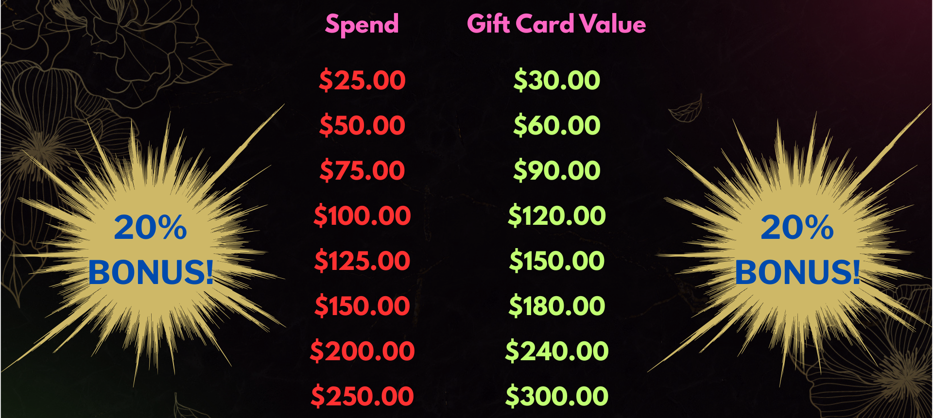 BUY A GIFT CARD & GET 20% MORE VALUE ADDED!