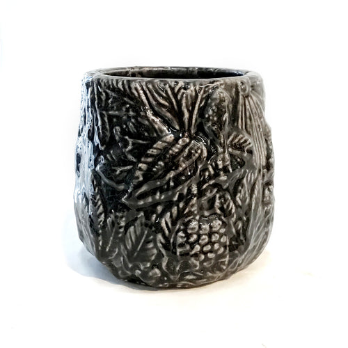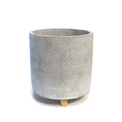 Pot, 6in, Ceramic,Textured, Footed, Grey