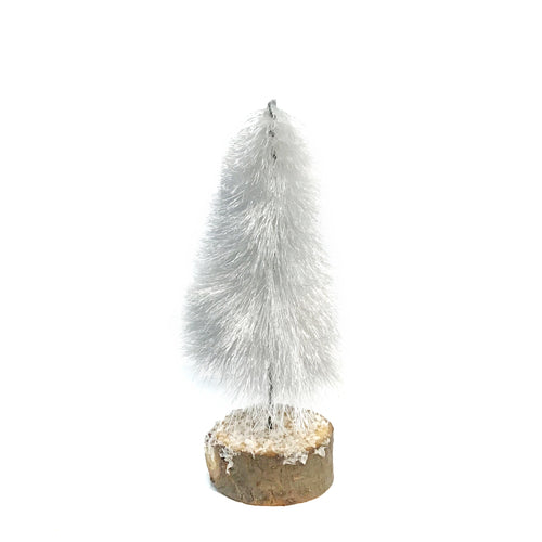 Bottle Brush Tree w/Wood Base,Cream, 6in