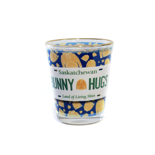 Shot Glass, Bunny Hugs License Plate, Gold Rim