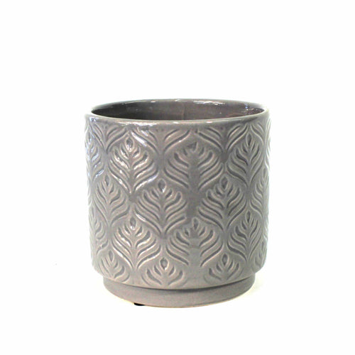 Pot, 4in, Ceramic, Peacock Feather Pattern, Grey