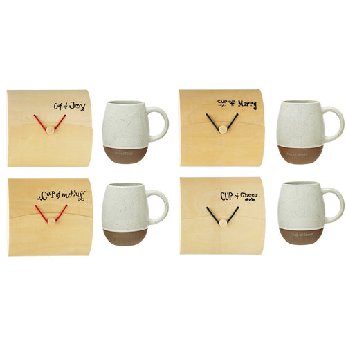 Stoneware Mug w/ Wood Gift Box, 2 Colors, 4 Styles