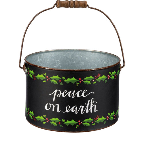 Planter, Metal, Xmas Bucket, Peace on Earth