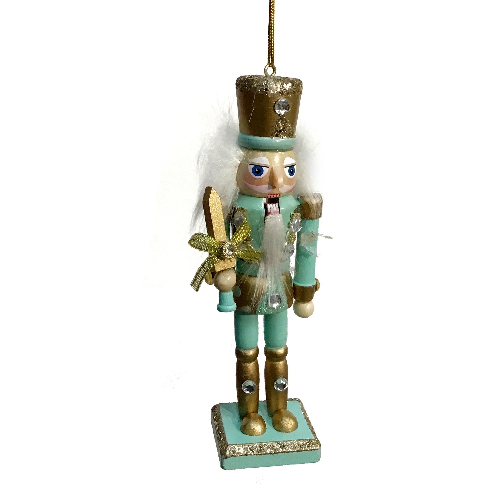 Celebrate the holiday season with Kurt Adler's charming 6" Aqua & Gold Nutcracker Ornaments! This delightful assortment features three beautifully designed nutcracker ornaments, each adorned with a stunning aqua and gold color scheme that adds a fresh and festive flair to your holiday decor. These whimsical nutcrackers embody the spirit of tradition while bringing a modern twist to your Christmas tree. Crafted with attention to detail, each ornament showcases intricate designs, from vibrant costumes to sparkling accents, ensuring that they stand out in any festive display. Their 6-inch size makes them versatile for hanging on your tree, embellishing garlands, or adding character to wreaths.