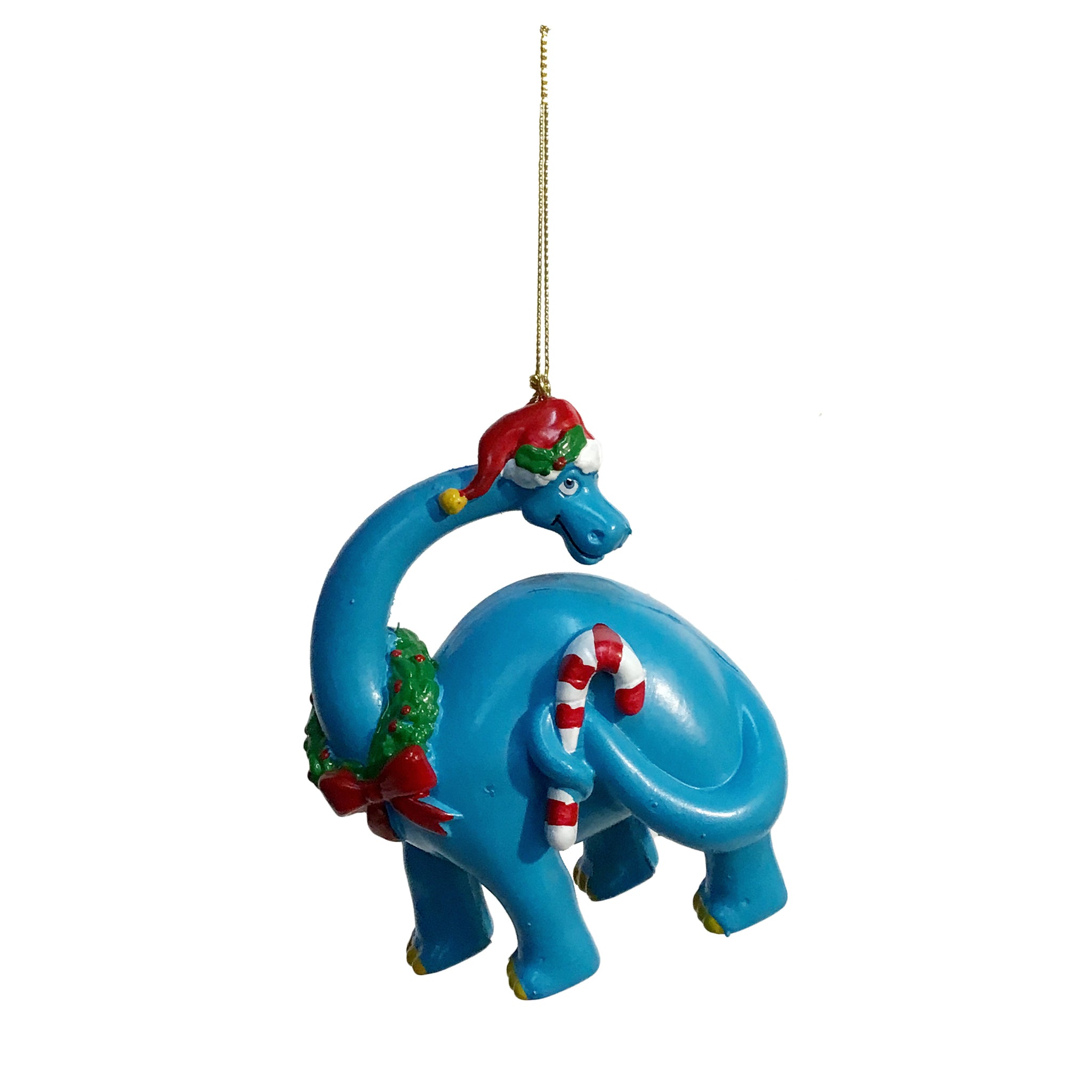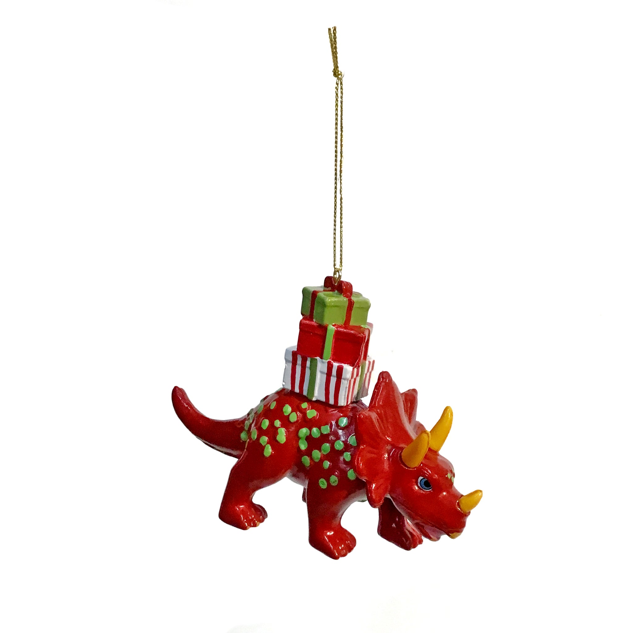 These dinosaur ornaments from Kurt Adler are a whimsical addition to any holiday décor or Christmas tree. This assortment features a red, blue and purple dinosaur carrying either decorated presents or a red and white candy cane.