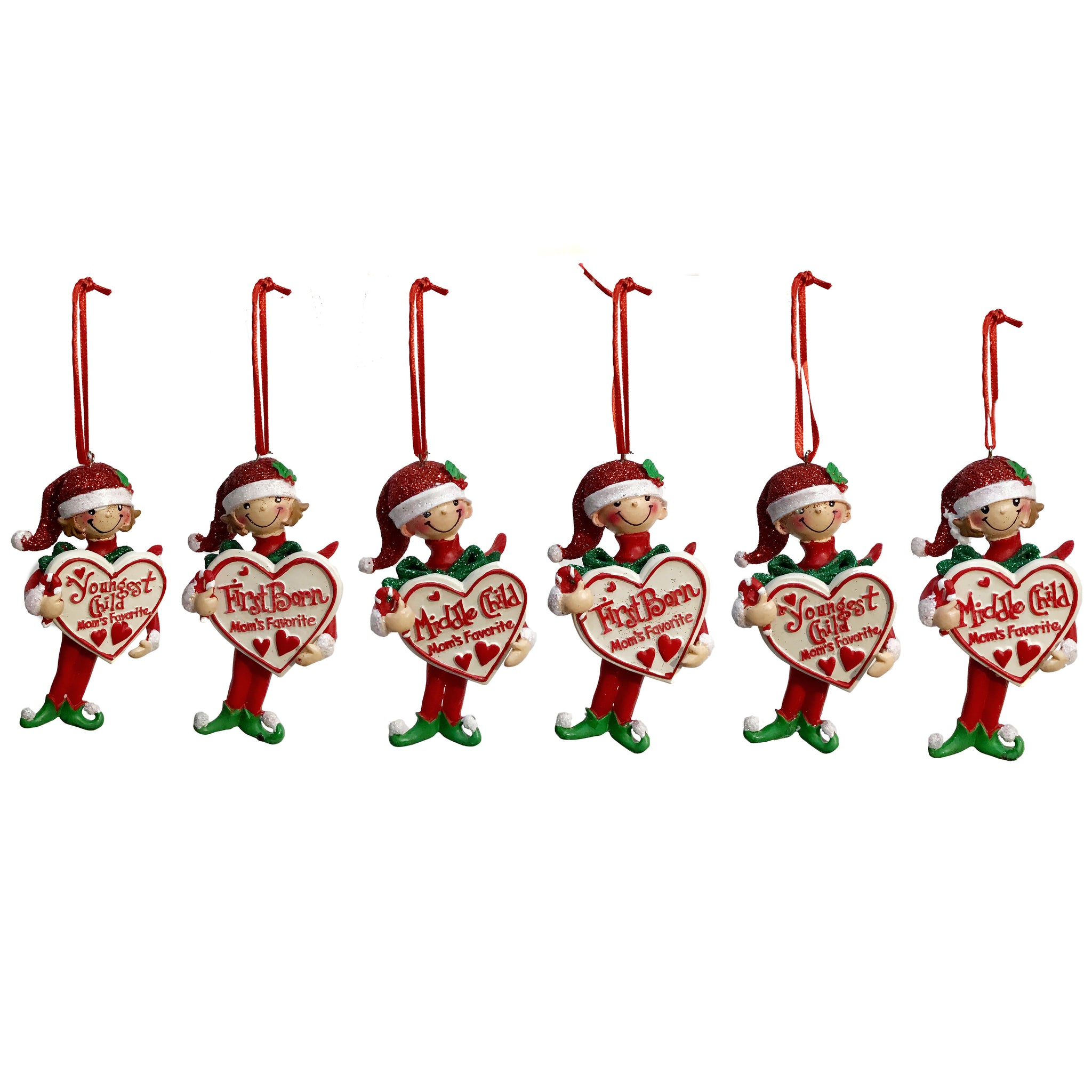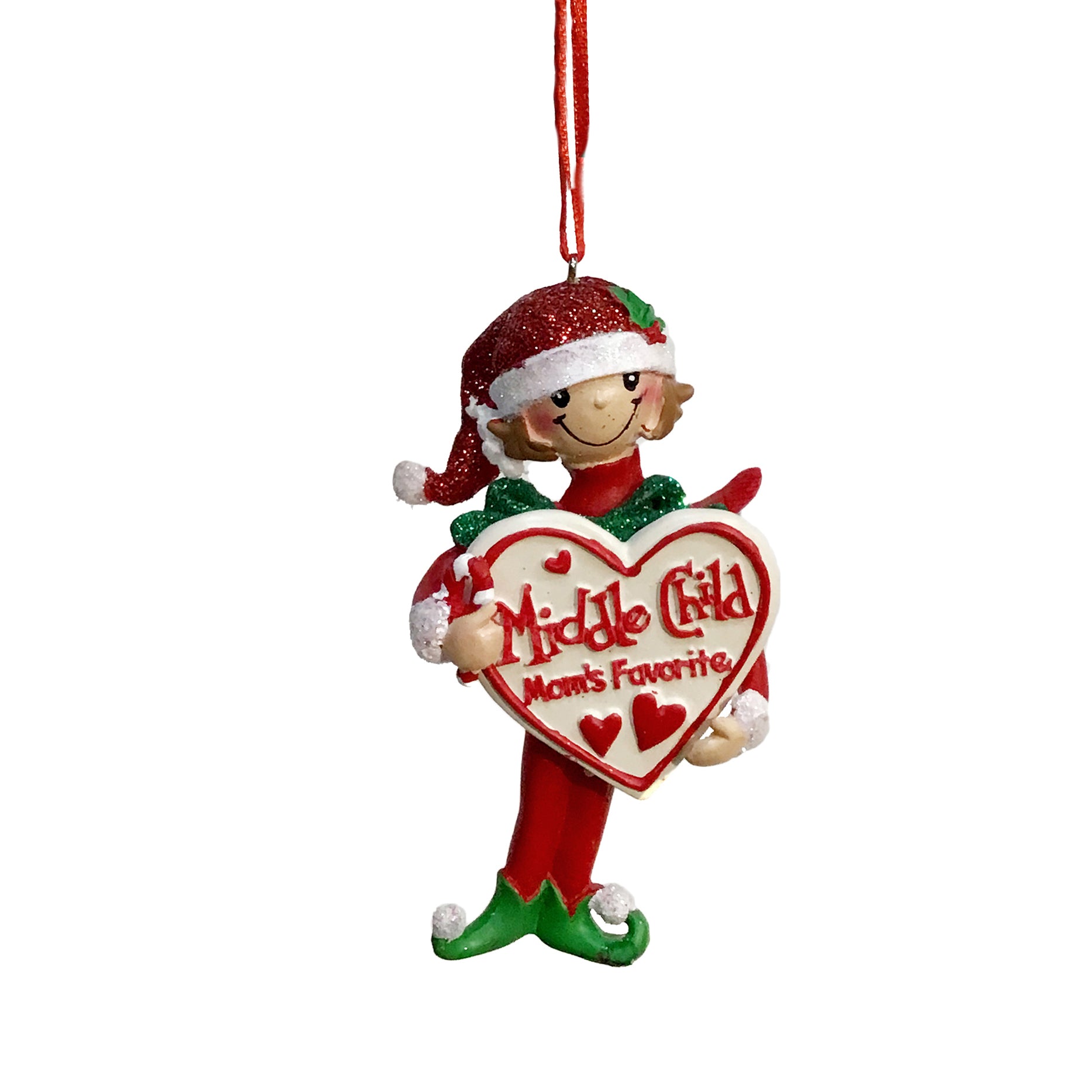 Celebrate your place in the family with this assortment of Mom's Favorite ornaments from Kurt Adler. Each ornament in this assortment features a girl or boy holding a heart shaped sign that reads either "Youngest Child," "Middle Child" or "First Born."