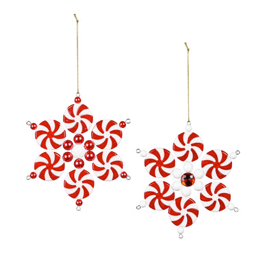 Peppermint Snowflake Ornament, 5 in, 2 Asst