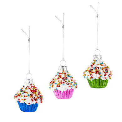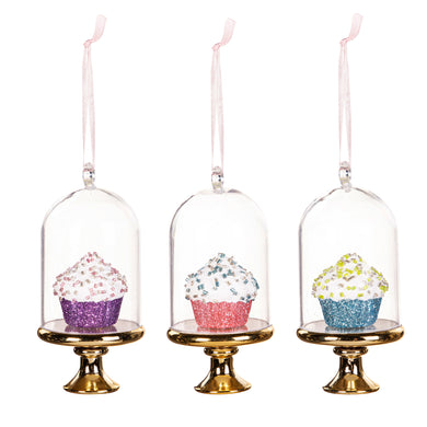 Plastic Cupcake in Cloche Ornament, 3 Asst