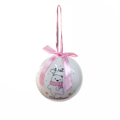 Ball Ornament, Clear w/ White & Red Glitter, 100mm