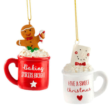 Ceramic Cocoa Cup Ornament, 3 Asst