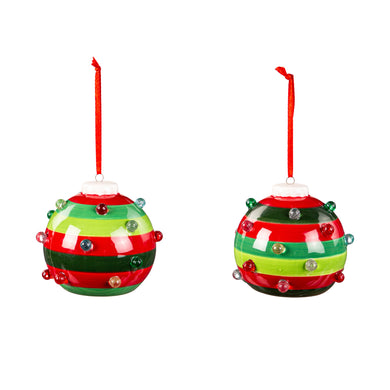 Ceramic LED Round Ornaments,3in, 2 Asst