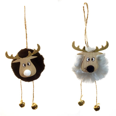Faux Fur Reindeer Ornament W/Bells, 2 Asst