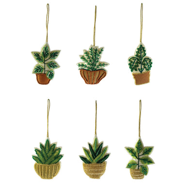 Cotton & Glass Beaded Potted Plant Ornament w/ Emb