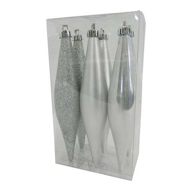 Finial Ornaments, Silver, 140mm Multipack 6pc