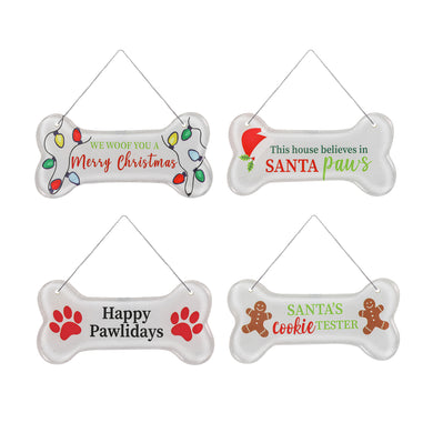 Glass Dog Bone Christmas Ornament, 4 Asst