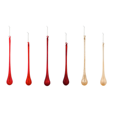 Glass Long Drop Ornament, Red/Gold, Set of 6