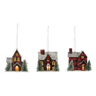 LED Plaid Paper House Ornament, Boxed Set of 3