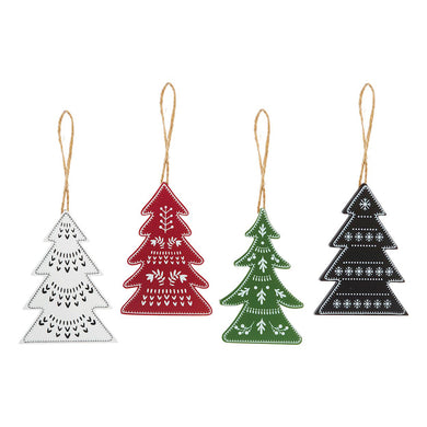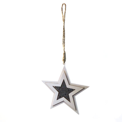 Wood Plaid Star Ornament with Greenery, 2 Colours