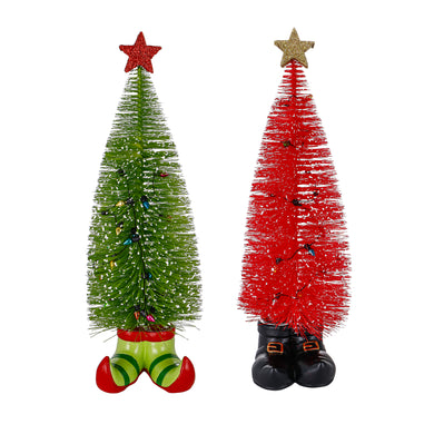 Bottle Brush Xmas Tree w/Feet, 2 Asst