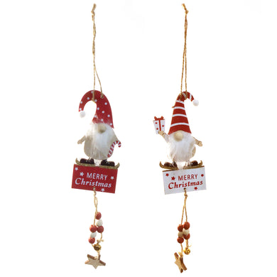 Gnome w/Merry Christmas Sign Ornament, 2 Asst