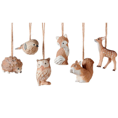 Wooden Carved Animal Ornaments, 6 Asst