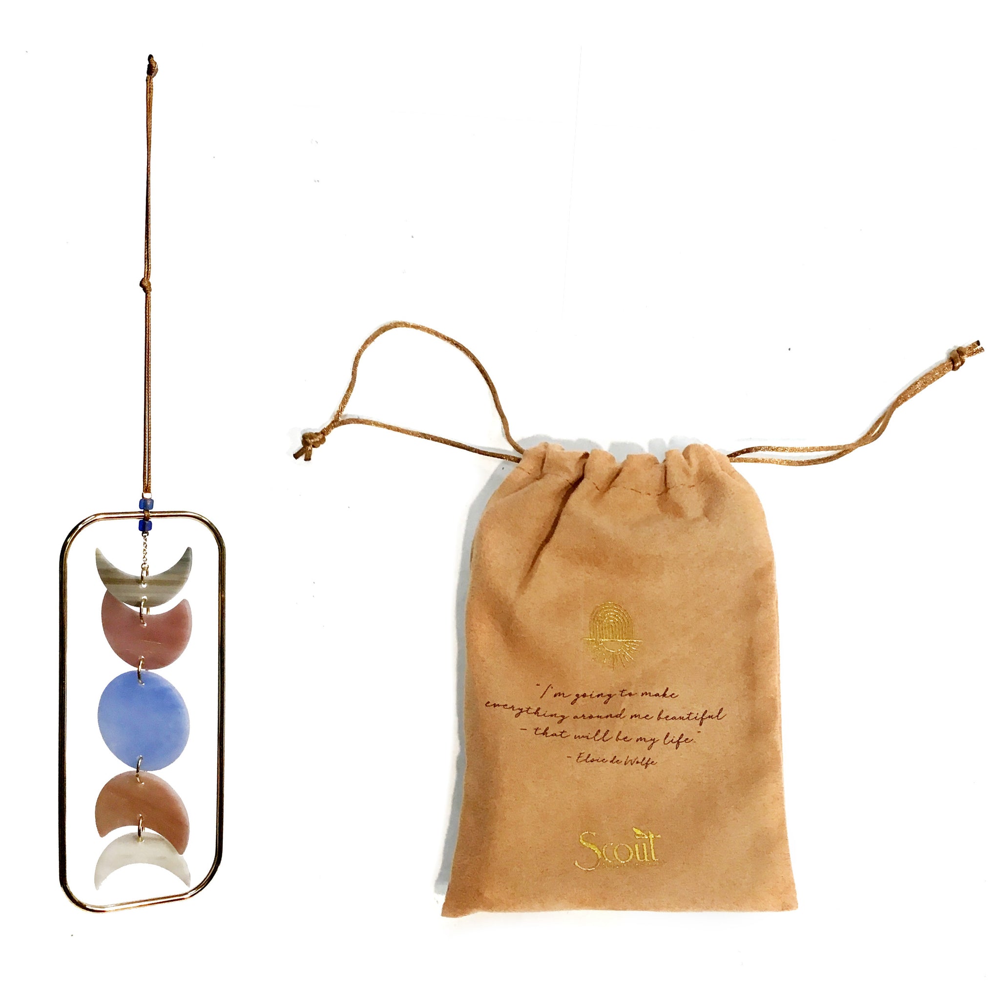 houghtfully designed to cast a magical glow, these luminous accents turn sunlight into a mesmerizing dance of color and light. Each piece of stained glass is hand cut and framed in graceful gold in one of four harmonious designs. The addition of glass and metal beads on the natural cord creates a thoughtful, layered accent. Every stained glass light catcher comes in a beautiful polish bag making it the perfect gift to create wonder from light.