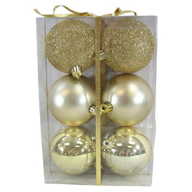 Ball Ornament, Gold, 80mm Multipack 6pc