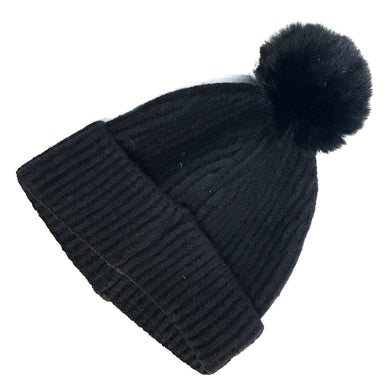 Knitted Toque, Removable Pom Pom, Black