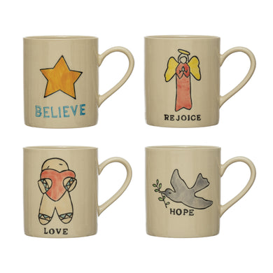 Hand-Painted Stoneware Mug with Holiday Icon, 10oz
