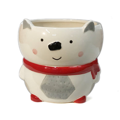 Pot, 4in, Ceramic, Dolomite, Polar Bear with Scarf
