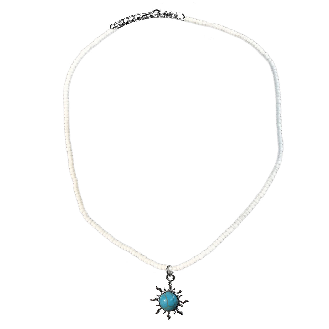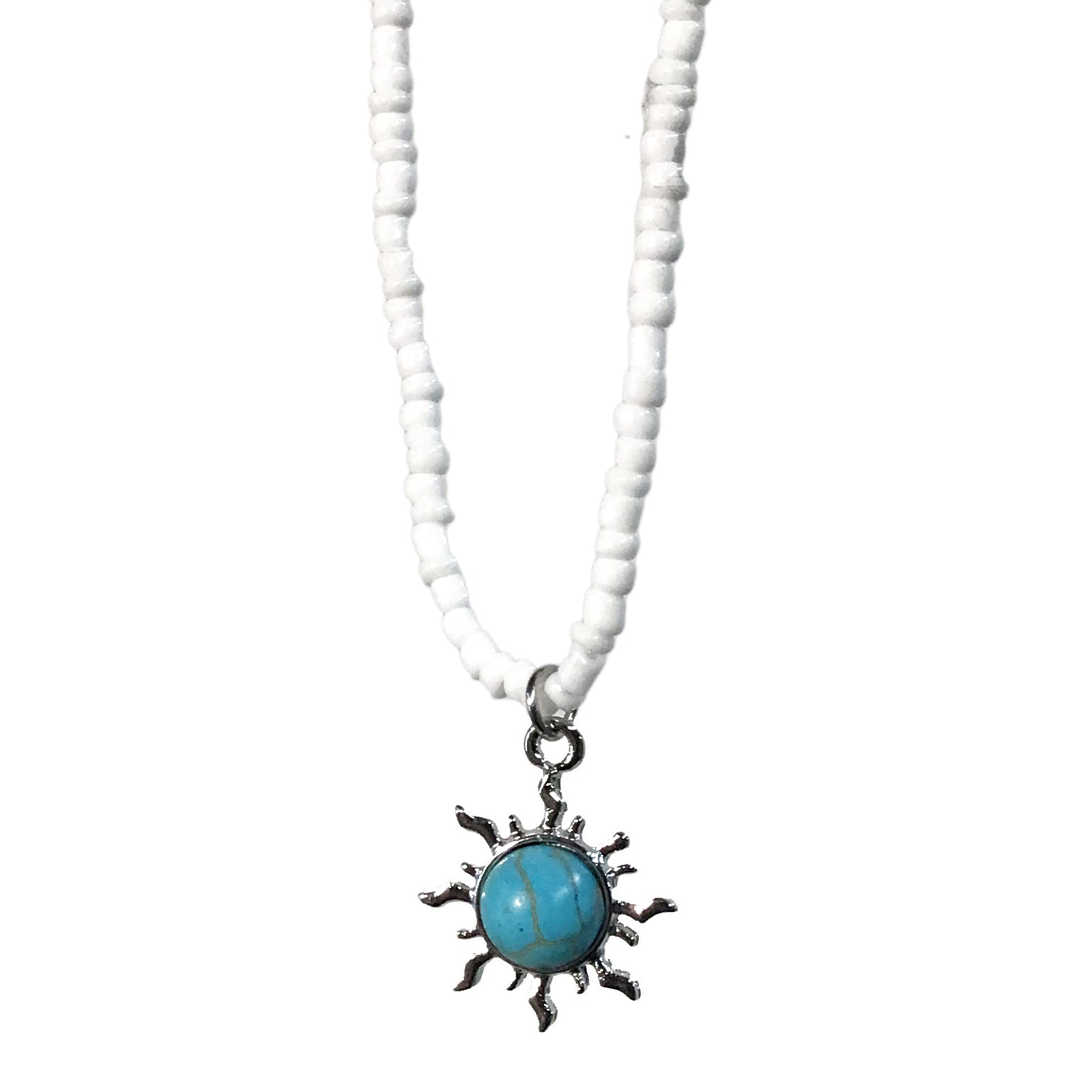 • Load image into Gallery viewer, Necklace, White/Blue Sun, 16"+2" Extender