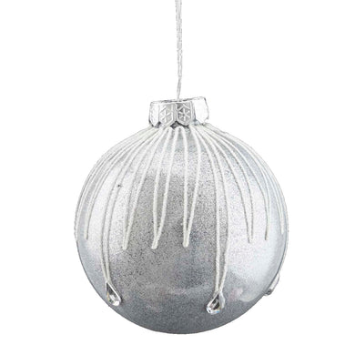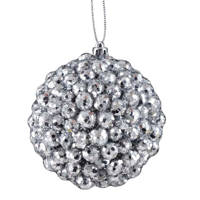 Ball Ornament, Silver Popcorn with Glitter, 100mm