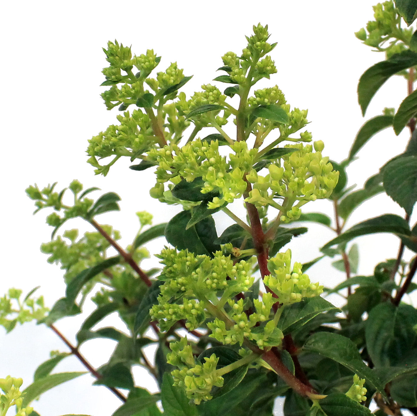 Strawberry Sundae® is a delicious new compact hydrangea from the same breeder of Vanilla Strawberry®. Similar in many ways to Vanilla Strawberry with one important exception, its smaller stature. Flowers emerge creamy white in mid summer, change to pink and finally to strawberry red. The flowers will remind you of a refreshing strawberry sundae ice cream treat on a hot summer afternoon. With its compact habit this hydrangea can add color to a small space garden or container and the fantastic flower color lasts well into fall. Excellent for fresh cut and dried flower arrangements. A First Editions® variety.